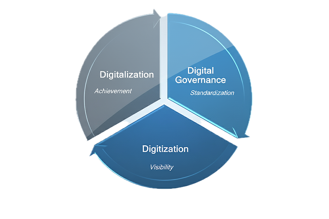 The foundational step for digital transformation is to build “Digital Governance” that defines data that represents activities with input and output in real business world. In other words, data is to the fact translated to digital format to understand man, machine, material, method and environment in factory to detect and solve the problem/risk or to make decisions to run business in optimal way. The data needs to be standardized in terms of business context. In addition to standardization of data for digitalization, security of data need to be always considered with access level and protection from external threats. Technologies for transforming facts to data need to be standardized as well to manage the journey at optimal cost and low risk.